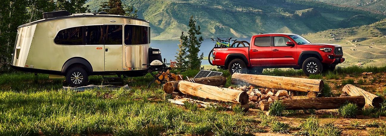 The Toyota Tacoma's towing capacity indicates the truck can pull a camper. The available tow package offers Trailer-Sway Control to help make towing easier and safer. It's important to ensure your vehicle is properly equipped to tow and that all the instructions for the vehicle and the trailer are followed correctly, as well as any capacity ratings. This means having proper tires, and Toyota Tacoma tires for sale at Toyota of New Bern can help get the job done. Contact a sales specialist at Toyota of New Bern today for assistance.